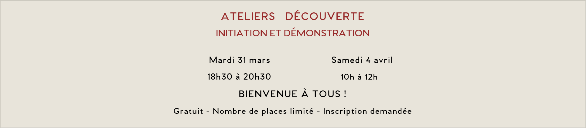 S'inscrire à un atelier découverte :