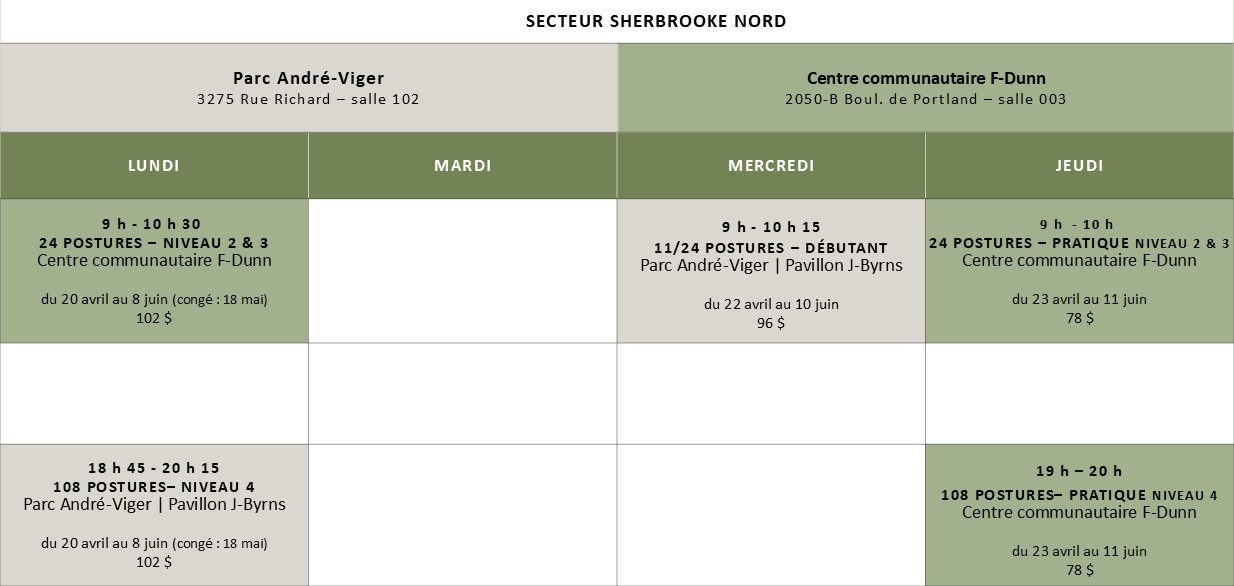 HORAIRE - PRINTEMPS 2026- DE JULIE SHAFFER - SHERBROOKE